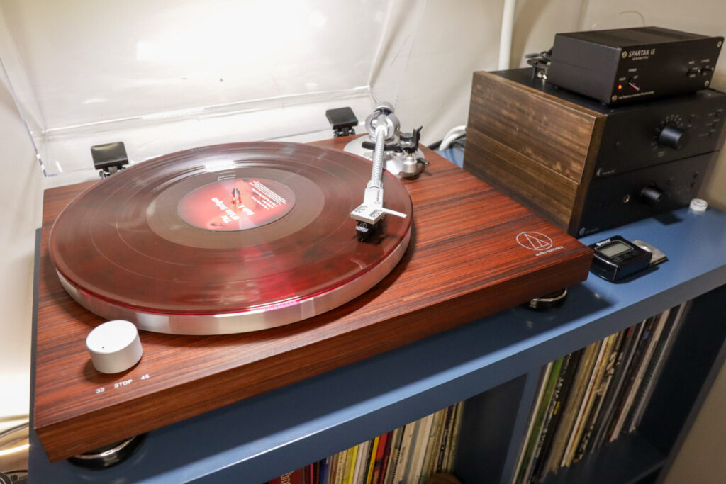 Spinning a 20th-anniversary copy of The White Stripes Elephant, the AT-LPW50BT does a great job of presenting the raw intensity of the simple but powerful drums and driving guitar riffs. The depth of the low end on the album’s opener, “Seven Nation Army” is noticeably thicker and tighter through an external phono preamp. The pumping sound of analog tube compressors also becomes richer and more apparent.