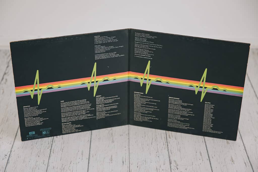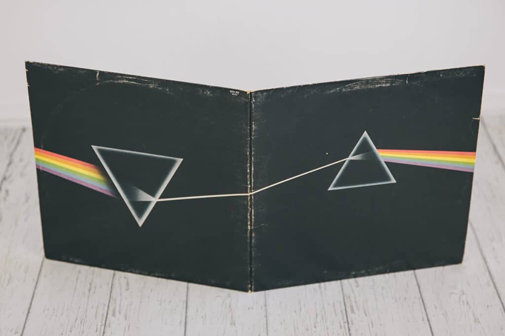One of the most iconic album covers of all timeโfamous for its depiction of a glass prism dispersing light into colorโit’s often forgotten that this imagery continues on the reverse side of the beautiful gatefold album cover.