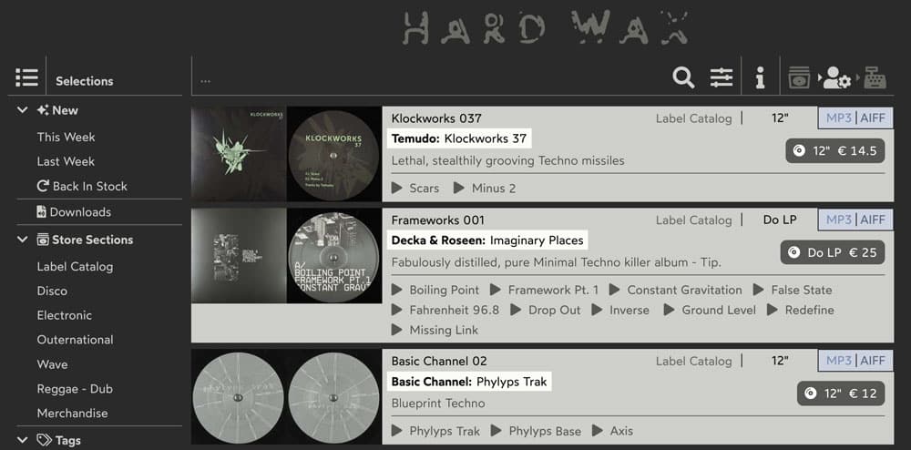 Based in Berlin, Hard Wax is one of the world’s leading record stores for the electronic music scene since its founding in 1989 by Mark Ernestus and Moritz Von Oswald, who were key figures in the development of the dub techno sound.