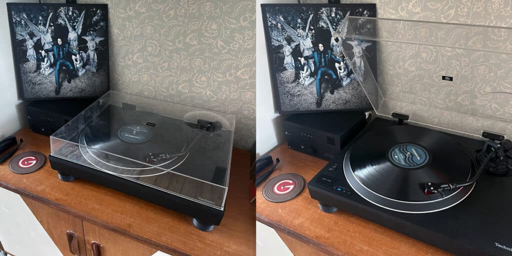That said, if you’re playing records at moderate or low volumes in a living room where household pets and kids could accidentally damage your records, a dust-cover-down approach may be a wise move! This is the attitude I adopt when playing records outside of my dedicated listening room.