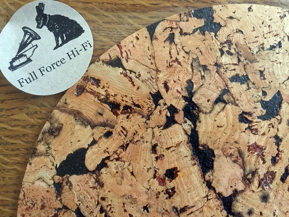 I’ve used cork on my own turntable setup for many years, and so I was encouraged to see a company like Full Force Hi-Fi bringing something new to the table. Andrew (the company founder) has combined the great sonic benefits of cork and turned up the visual appeal to 11 with his wide range of beautiful hand-cut cork mats
