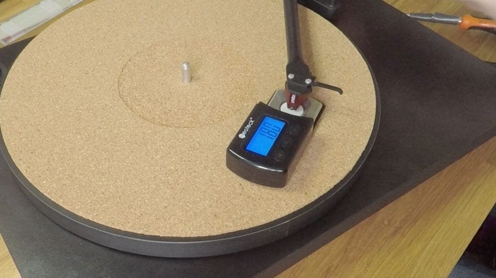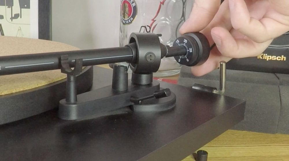 The traditional way to apply the stated downward tracking force is to get the arm to float above the platter and then using the counter-weight dial to adjust for tracking force, but this isn’t 100% accurate. A better way is to use the first method to get as close as possible and then fine-tune until you get the perfect tracking force using a digital tracking force gauge. We likeย the Neoteck model.