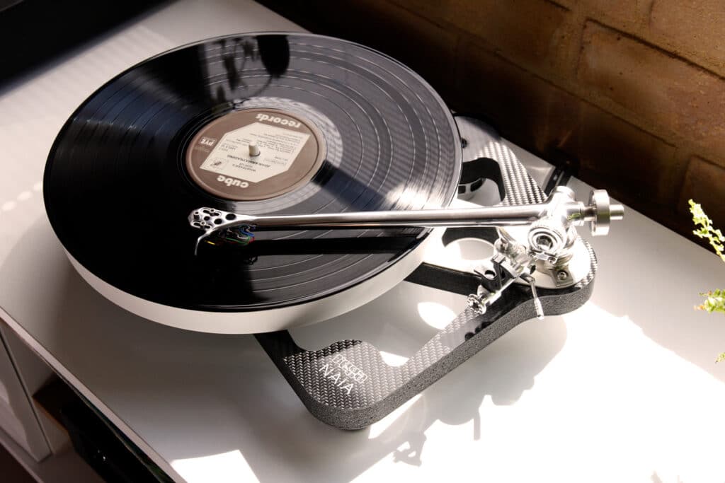 Rega is eager to emphasize the Naia’s innovative features, materials, and technology, all developed over many years. These features include an advanced version of Rega’s pioneering low mass, high rigidity plinth technology, which utilizes a Graphene-impregnated carbon fiber skeletal plinth with a Tancast 8 foam core.