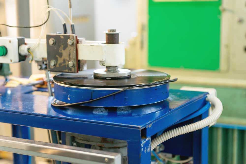 At the studio, our new shiny master discs are cut using a recording machine called a lathe.